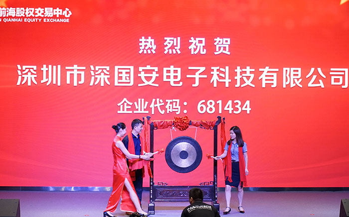 2019年6月19日,深圳市深國安電子科技有限公司作為廣東省氣體檢測儀行業強勢登入股交所,掛牌前海股交碼為:681434,樹立了行業標桿。人民日報社、鳳凰網、中華網、中國財經時報網、騰訊網、新浪網、搜狐網、未來網財經、中國安防行業網、慧聰網、北國網、中國應急網、太平洋安防網等眾多媒體進行了報道。